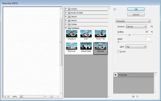 Click Filter > Texture > Texturizer. Use Texture: Canvas with Relief: 1 then click OK.